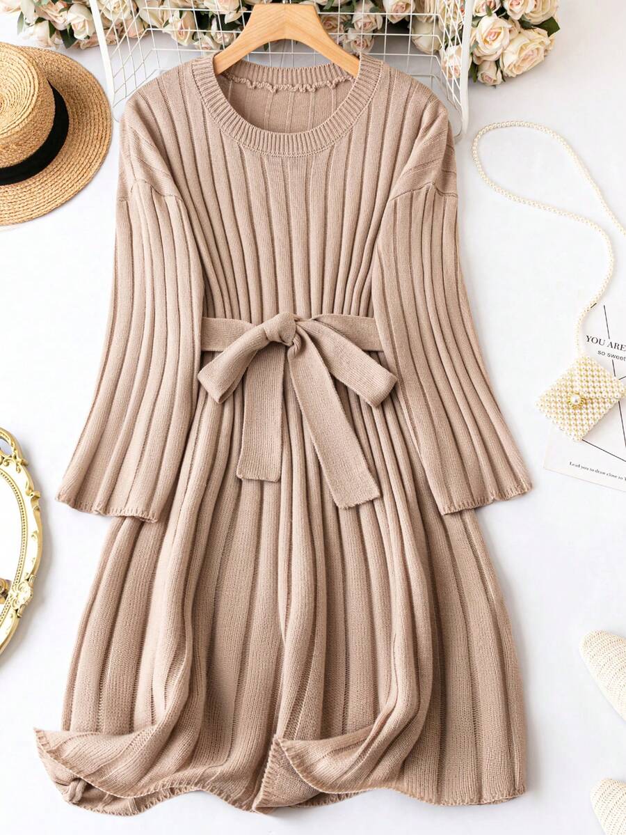 SHEIN CURVE+ Plus Size Belted Drop Shoulder Sweater Dress