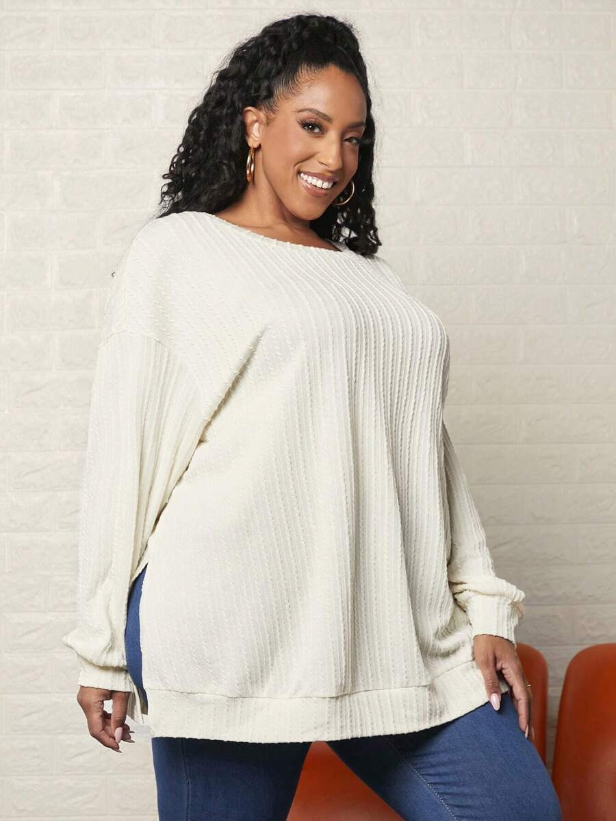 SHEIN CURVE+ Plus Size Drop Shoulder Round Neck Sweatshirt