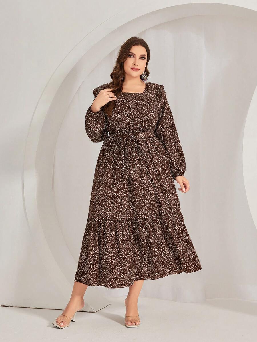 SHEIN Mulvari Plus Size Floral Print Belted Dress