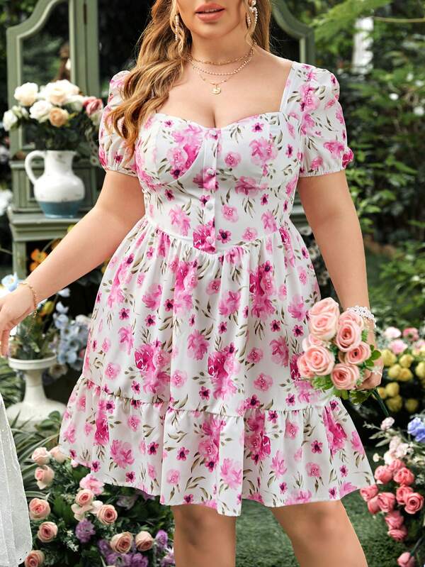 SHEIN Frenchy Plus Size Floral Print Bubble Short Sleeve Dress