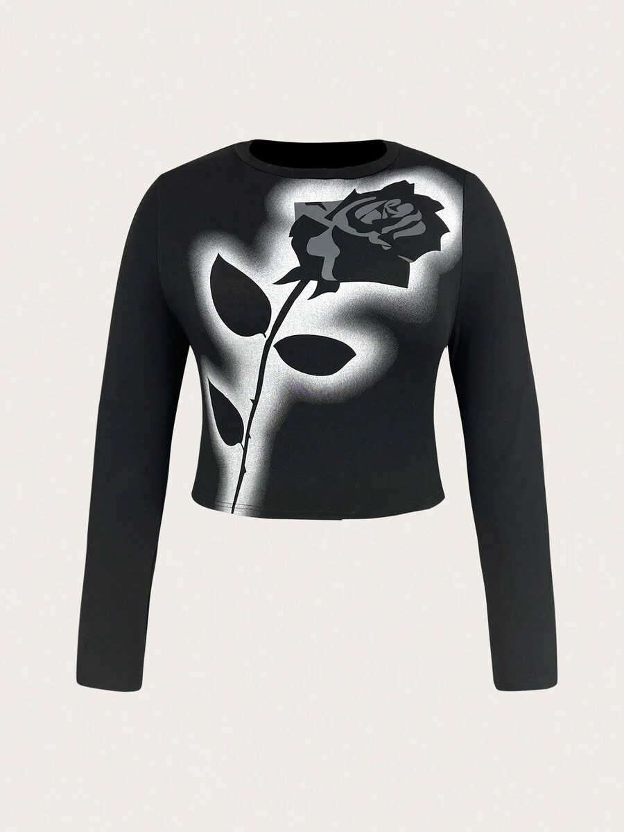 SHEIN ICON Plus Size Floral Print Crew Neck T-Shirt