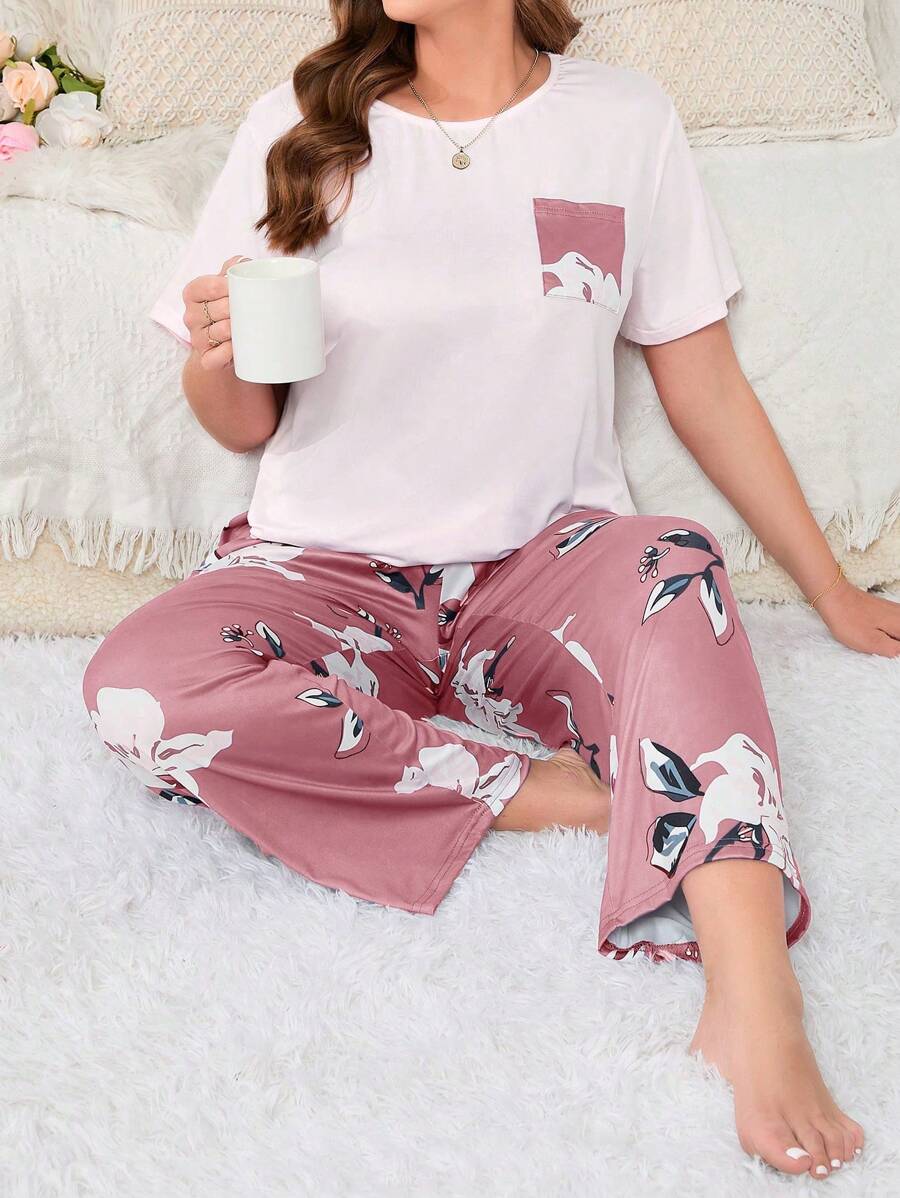 Plus Size Floral Printed Pajama Set