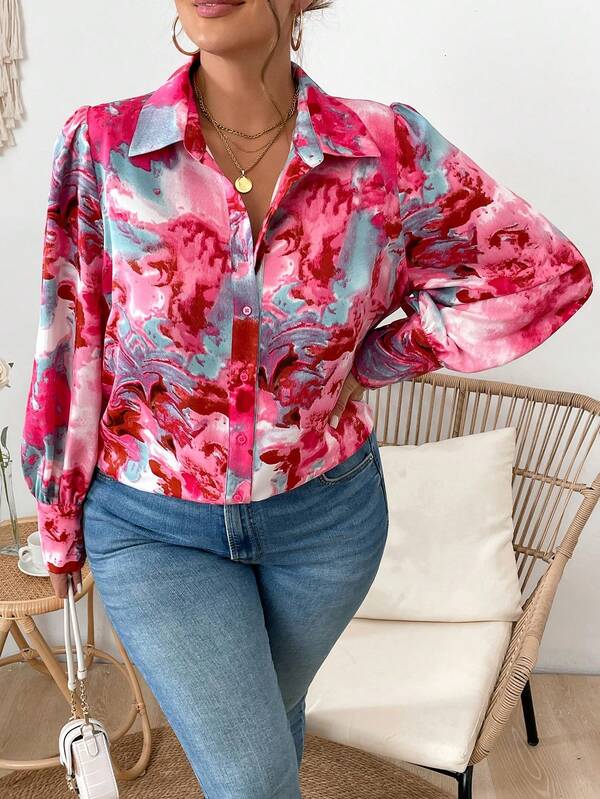 SHEIN Frenchy Plus Size Full-Print Long Sleeve Shirt