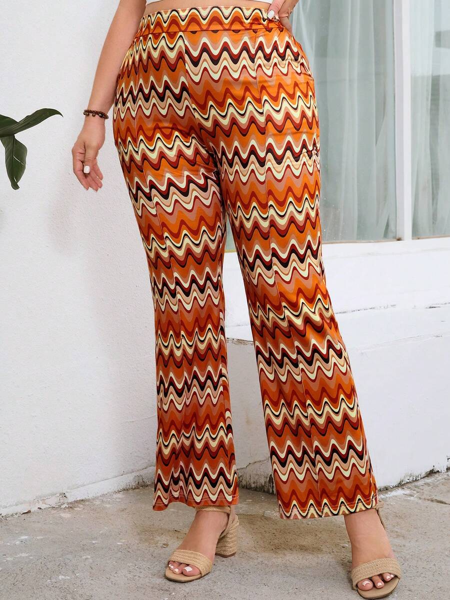 SHEIN VCAY Plus Size High Waisted Full-Length Printed Flared Pants