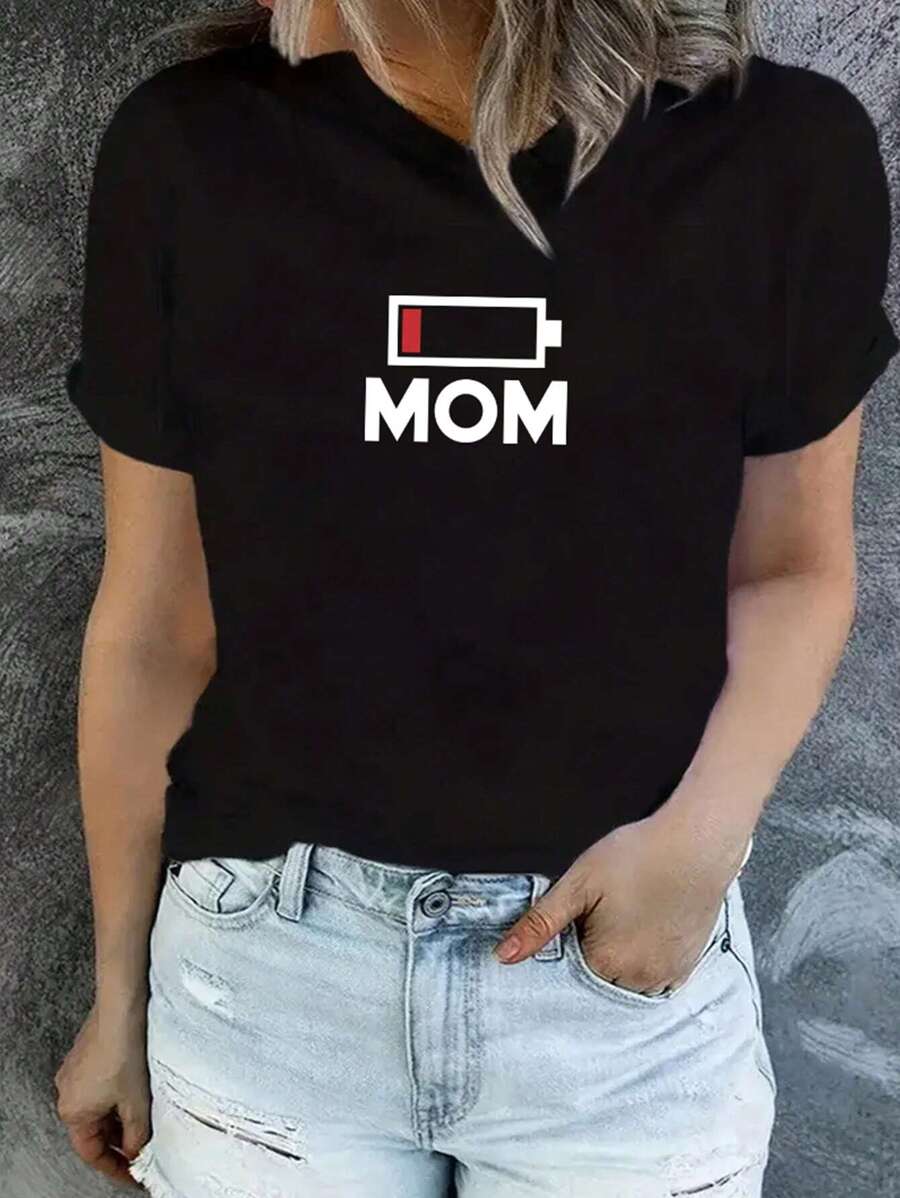 SHEIN LUNE Plus Size Letter And Electricity Printed Short Sleeve T-shirt