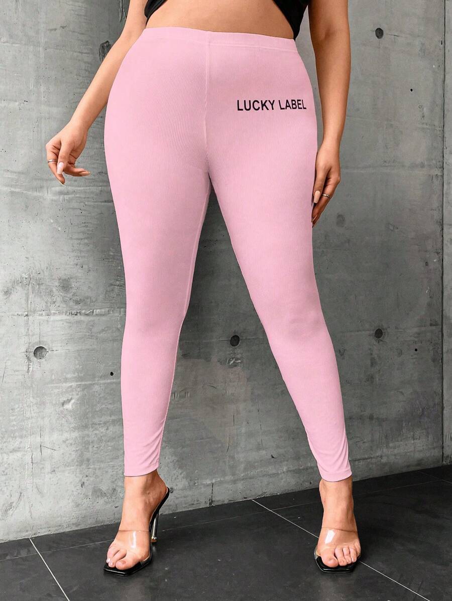 Plus Size Letter Print High Waist Leggings