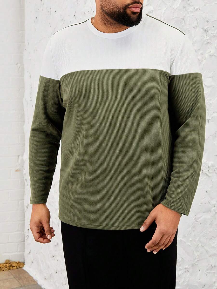 Manfinity EMRG Plus Size Men'S Colorblock Knitted Casual Patchwork T-Shirt
