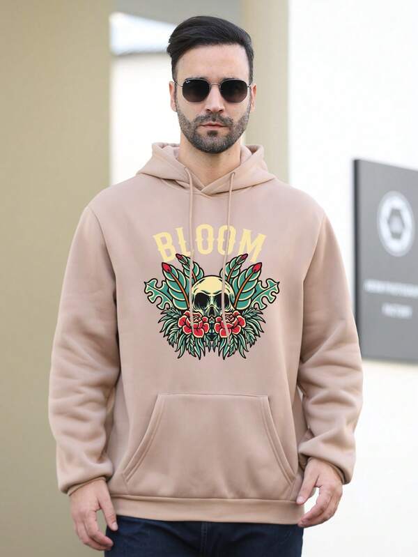 Plus Size Men'S Skull Print Fleece Hoodie
