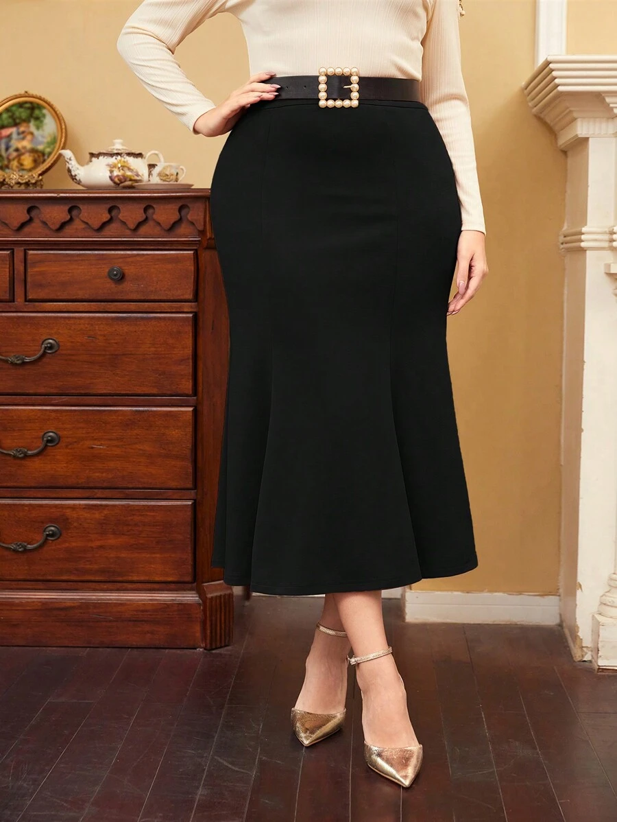 SHEIN Modely Plus Size Mermaid Hemline Elegant Skirt Without Belt