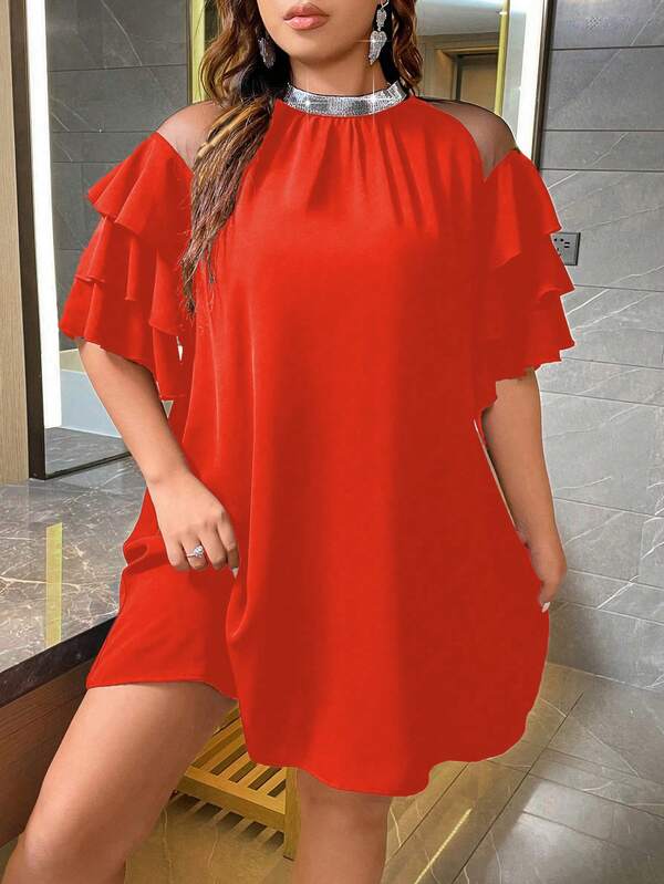 SHEIN Privé Plus Size Mesh & Sequin & Ribbon Patchwork Dress
