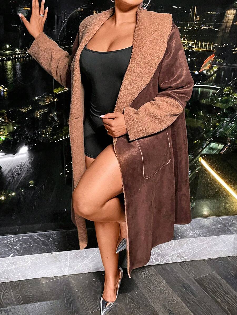 Plus Size Mid-length Wool Shearling Coat With Warm Lining