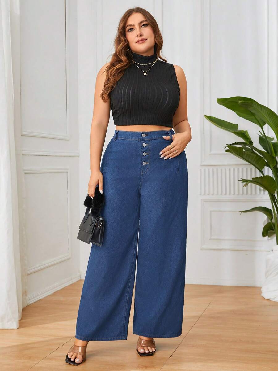 SHEIN Privé Plus Size Non-Stretch Straight Pants