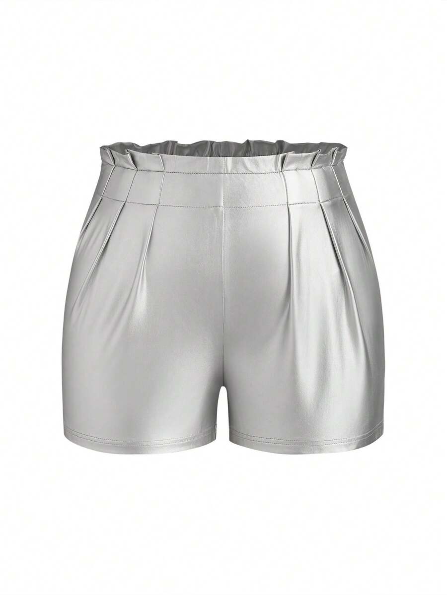 SHEIN Slayr Plus Size Paper Bag Waist Metallic Tone Shorts