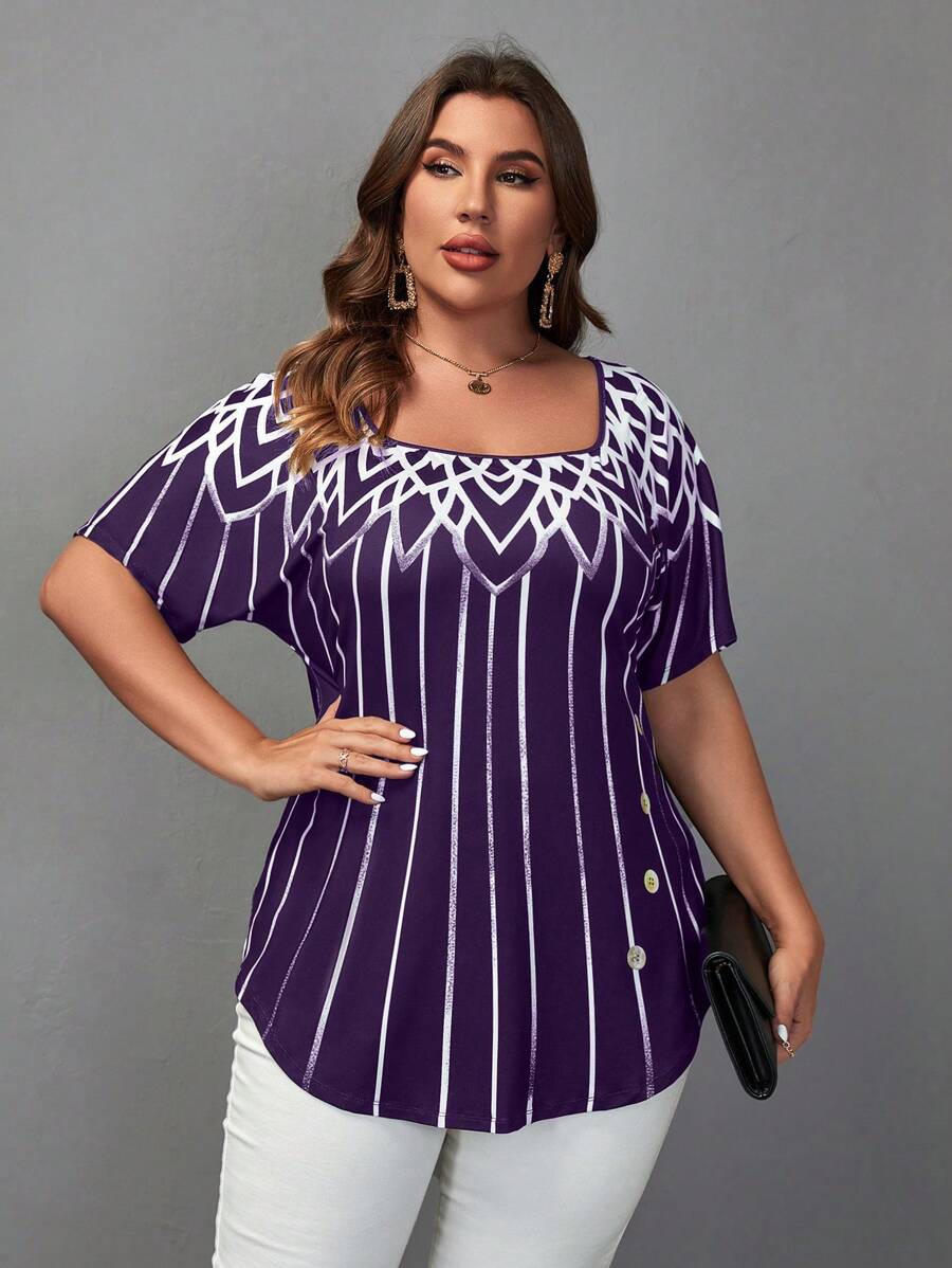 SHEIN Clasi Plus Size Pattern Printed Short Sleeve T-Shirt