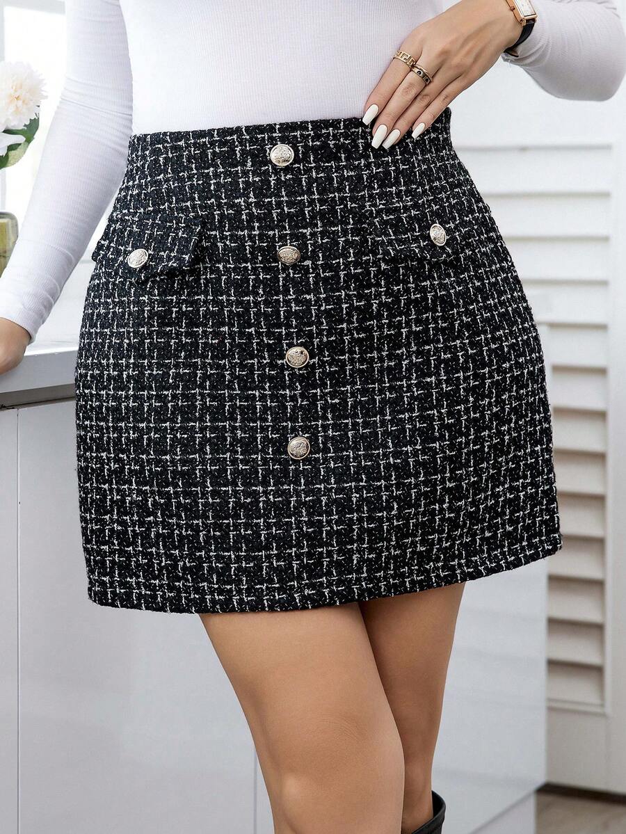 SHEIN Clasi Plus Size Plaid Front Button Skirt