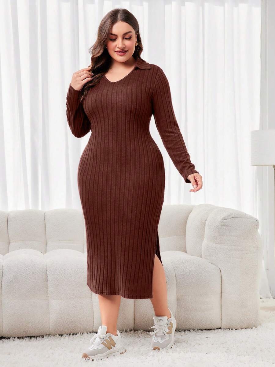 SHEIN Modely Plus Size Slit Long Sleeve Dress