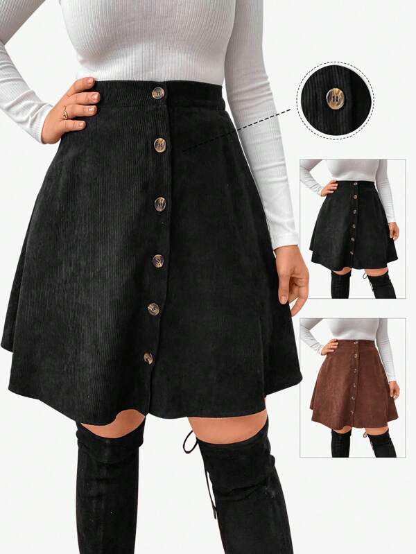 SHEIN Frenchy Plus Size Solid Color Button Decorated Skirt