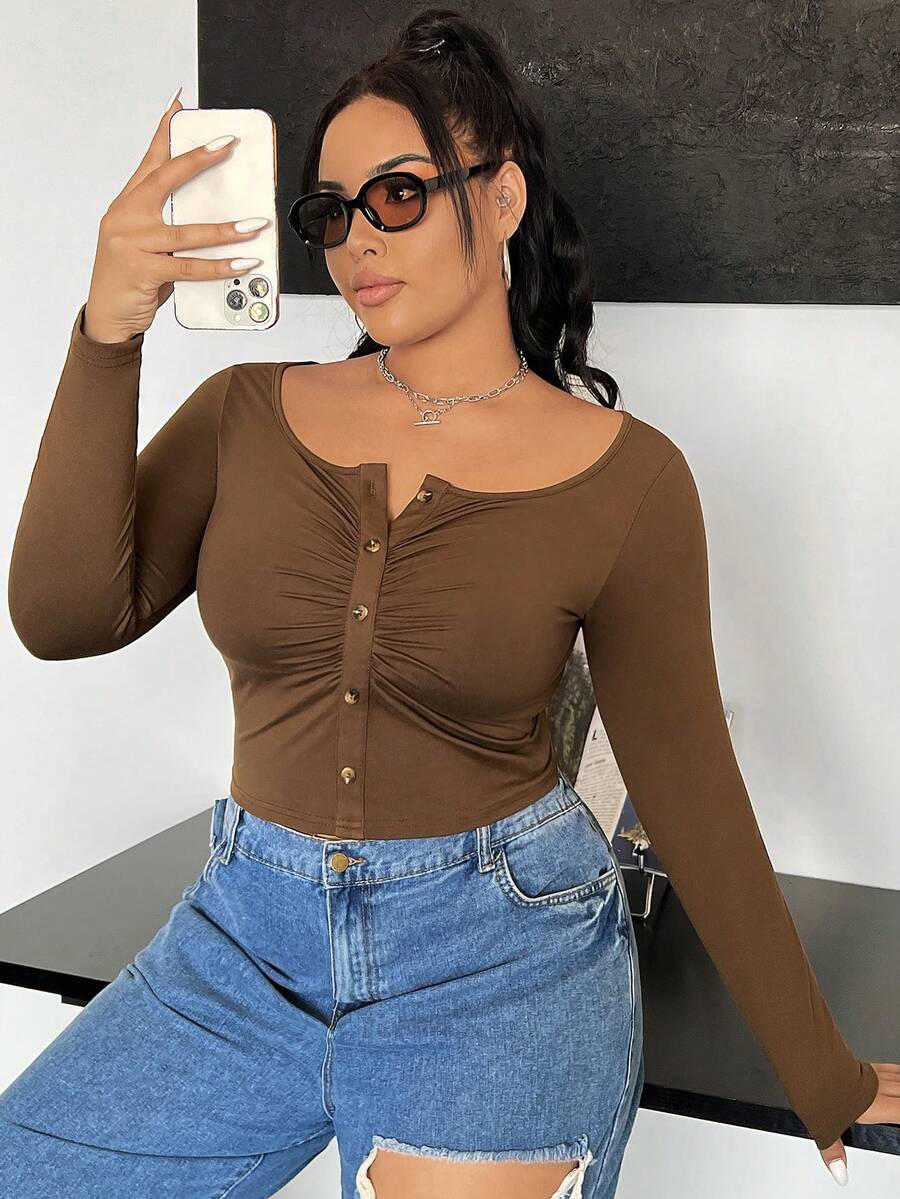 SHEIN EZwear Plus Size Solid Color Cropped T-shirt With Wrinkles