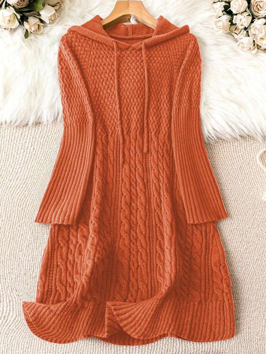 SHEIN LUNE Plus Size Solid Color Drawstring Hooded Sweater Dress