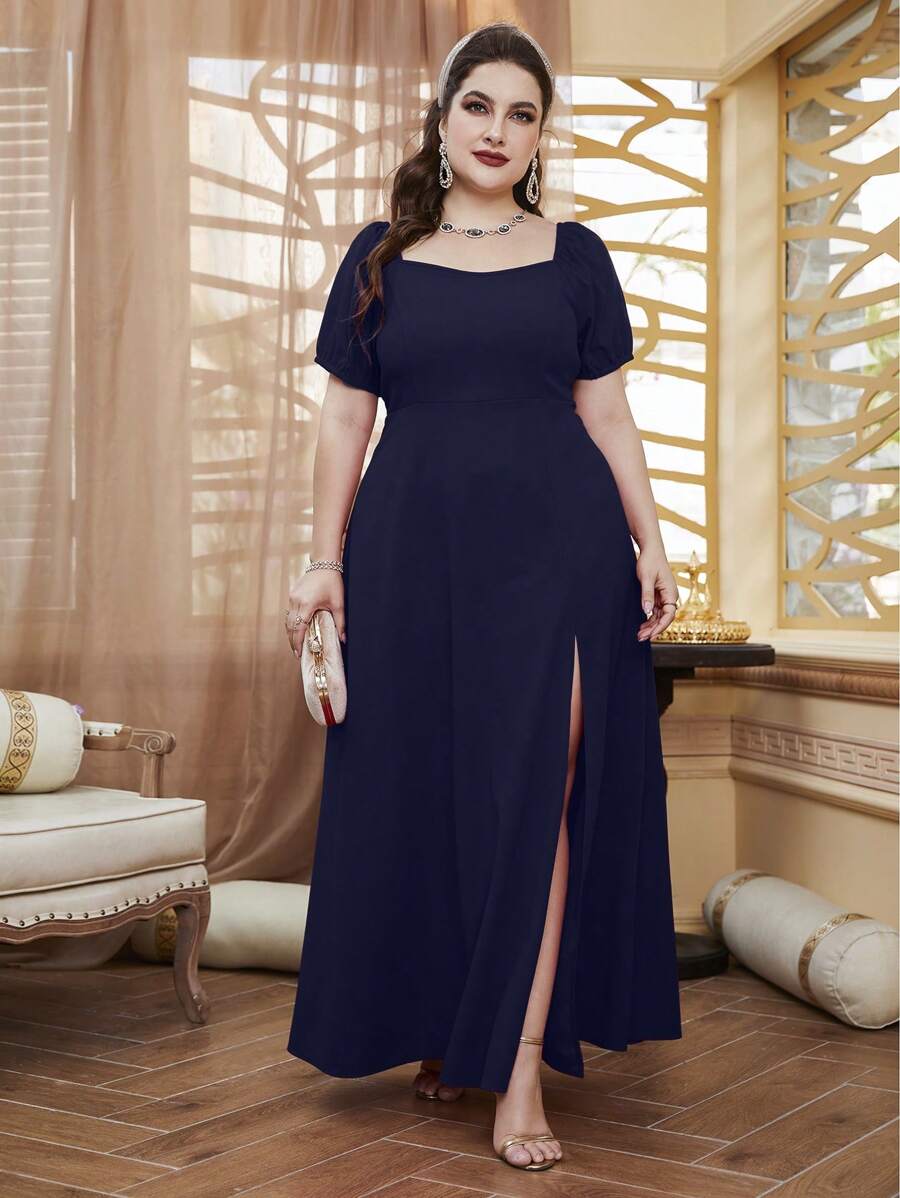 SHEIN Modely Plus Size Solid Color High Slit Dress