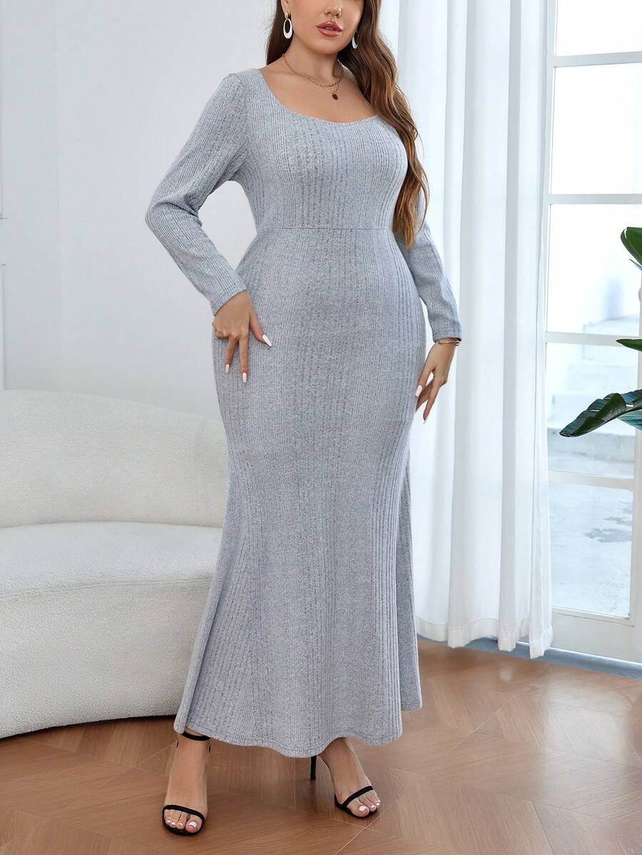 SHEIN Privé Plus Size Solid Color Rib Knit Mermaid Hem Dress