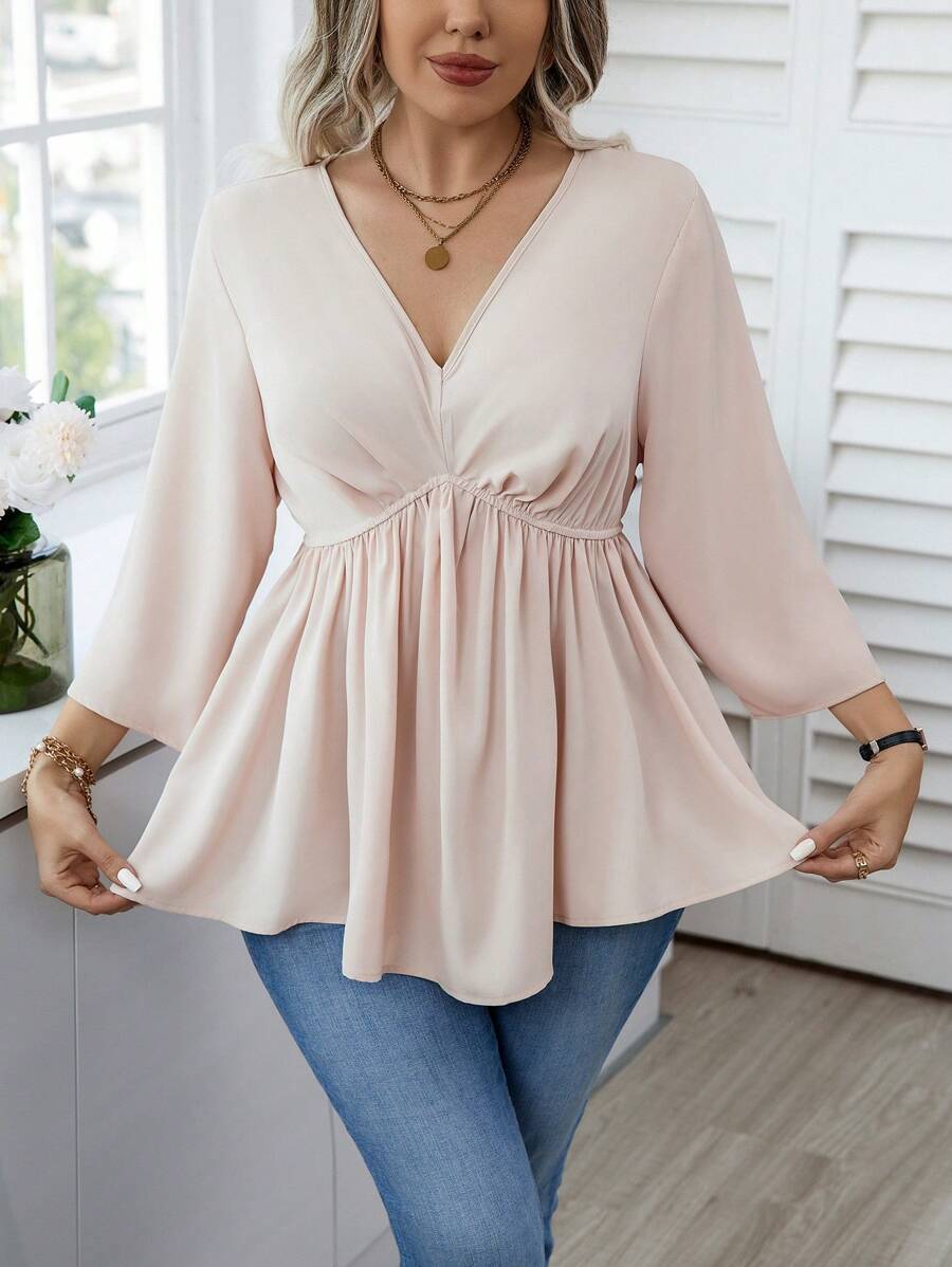 SHEIN Essnce Plus Size Solid Color Ruffle Edge Blouse
