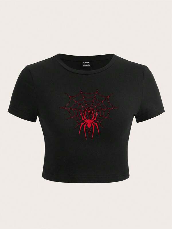 SHEIN EZwear Plus Size Spider Printed T-Shirt