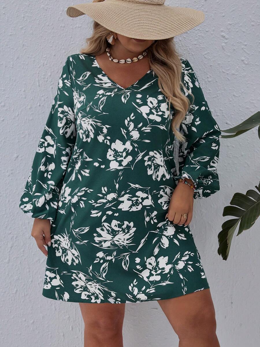 SHEIN VCAY Plus Size Vacation Style Loose Fit V-neck Dress