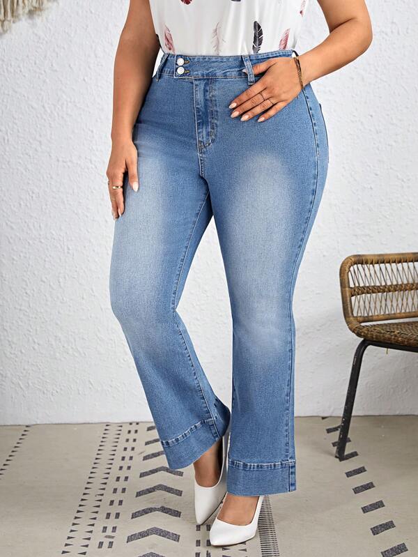 SHEIN LUNE Plus Size Water Washed Flared Jeans