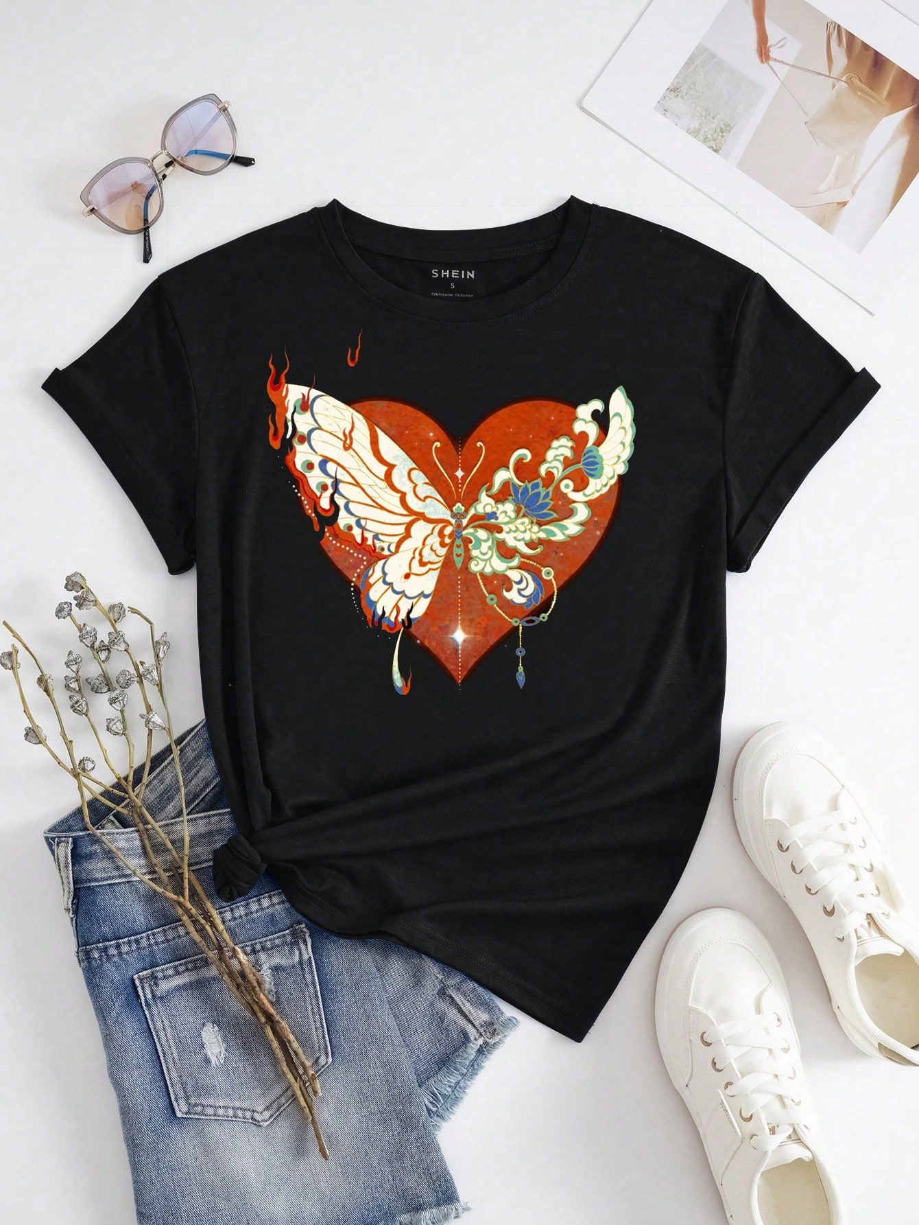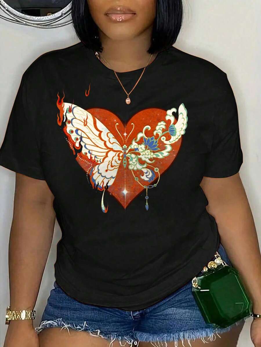 Plus Size Women'S Butterfly Print Short Sleeve Regular Shoulder T-Shirt
