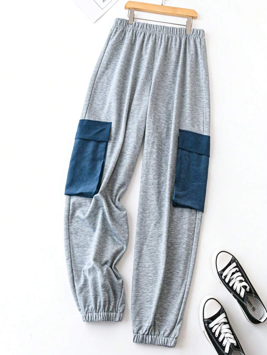 SHEIN LUNE Plus Size Women'S Colorblock Sweatpants With Pockets And Elastic Cuffs