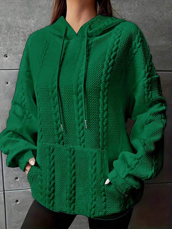 Plus Size Women'S Drop Shoulder Hooded Sweatshirt