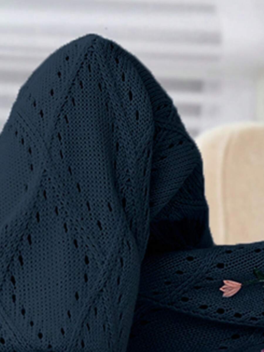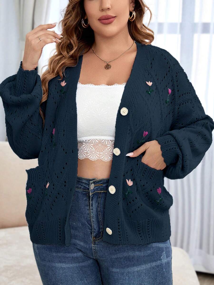 SHEIN LUNE Plus Size Women'S Embroidery Knit Open Front Cardigan