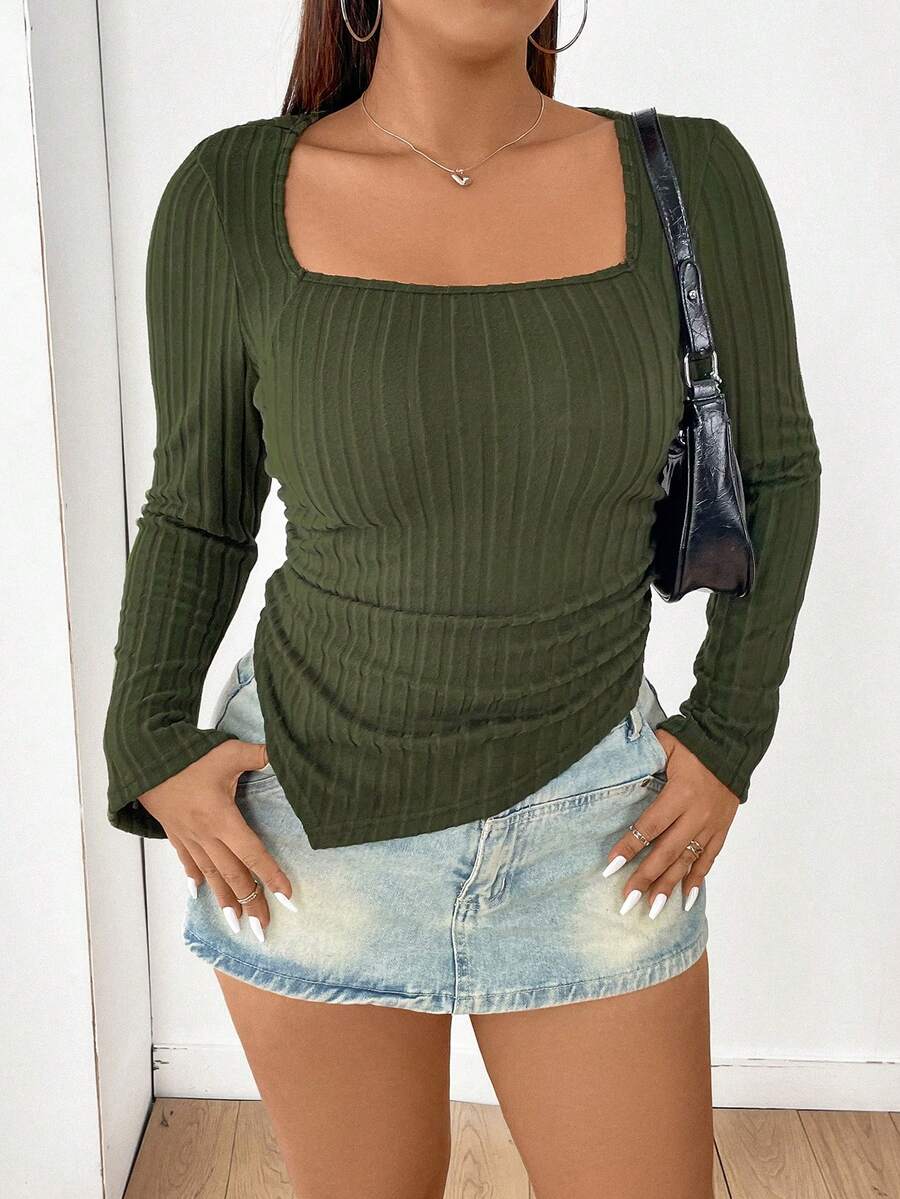 Plus Size Women'S Irregular Hem Ribbed T-Shirt