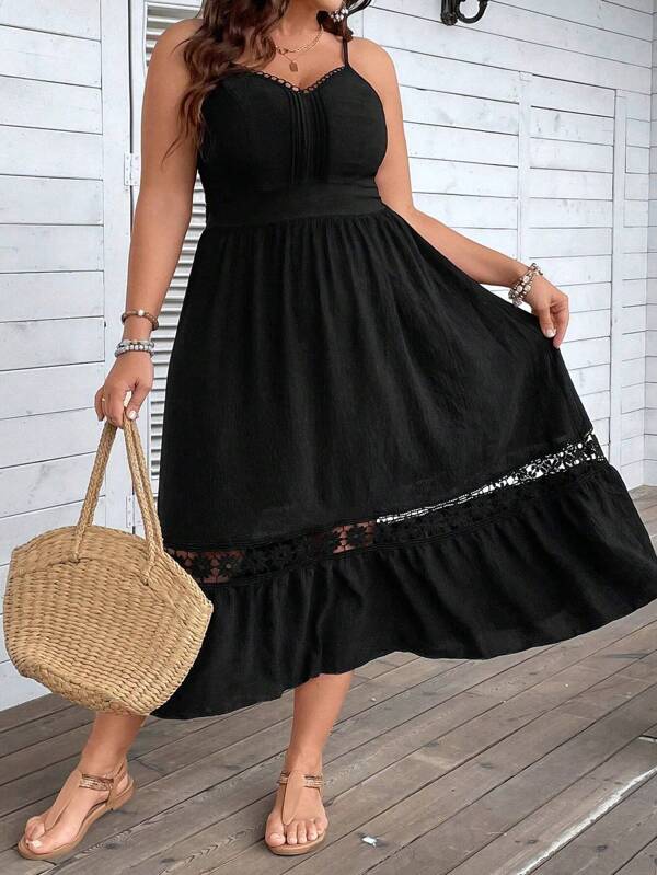 SHEIN VCAY Plus Size Women'S Lace Patchwork Spaghetti Strap Dress