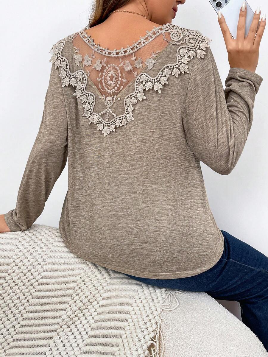 SHEIN Frenchy Plus Size Women'S Long Sleeve T-Shirt With Mesh Splice On Back