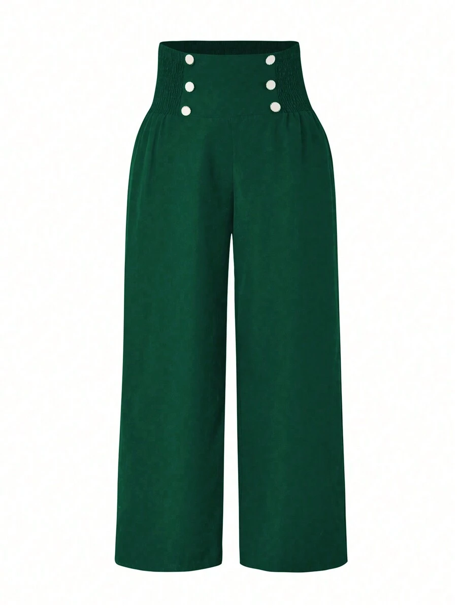 SHEIN Privé Plus Size Women's Loose Fit Double-Breasted Wide Leg Pants