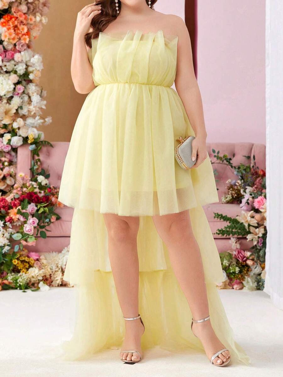 SHEIN Belle Plus Size Women'S Mesh Tutu Skirt With High-Low Hemline For Evening Party Dress