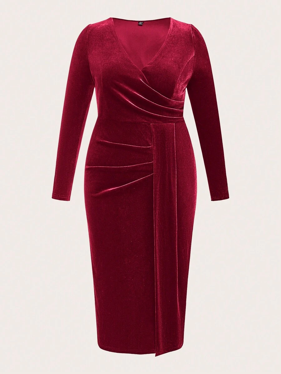 SHEIN Clasi Plus Size Women'S Pleated Long Sleeve Dress