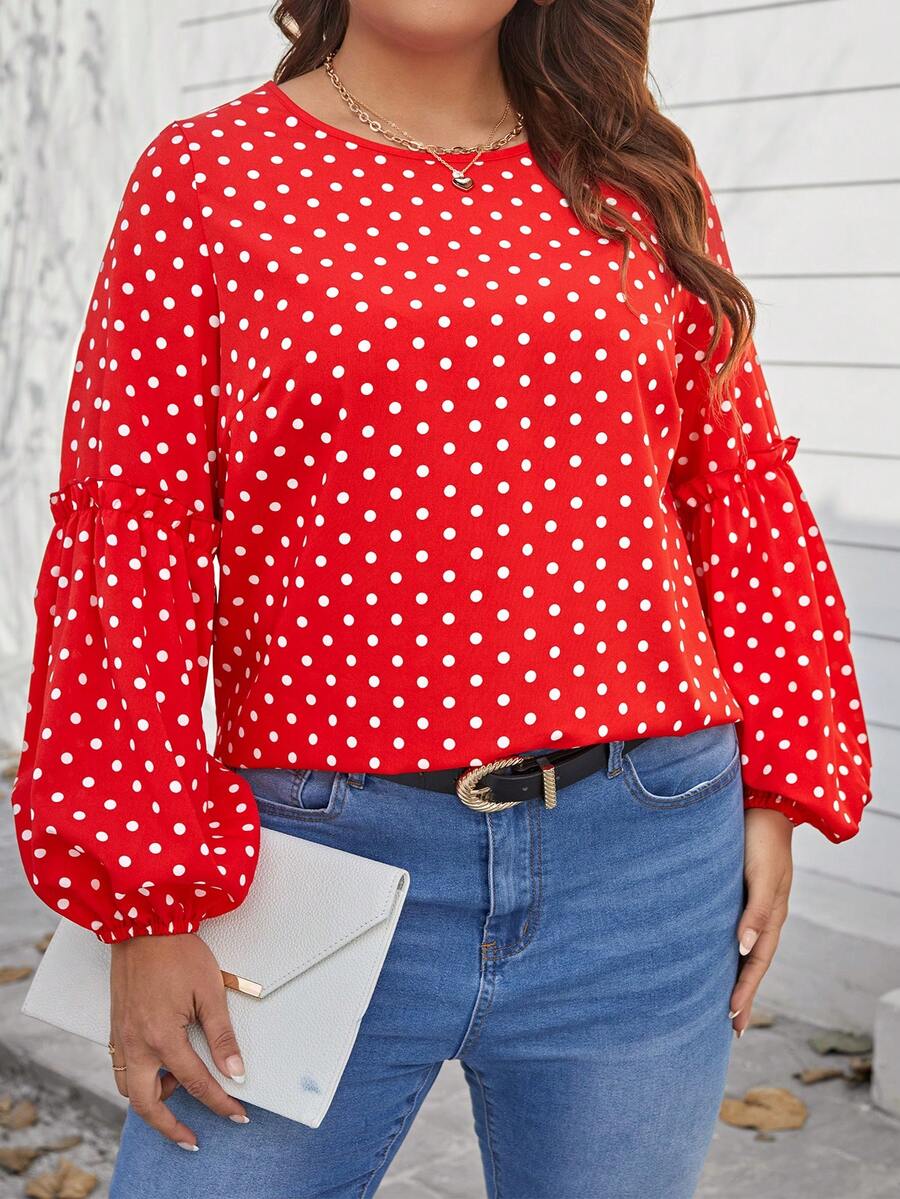 SHEIN LUNE Plus Size Women'S Polka Dot Lantern Sleeve Shirt