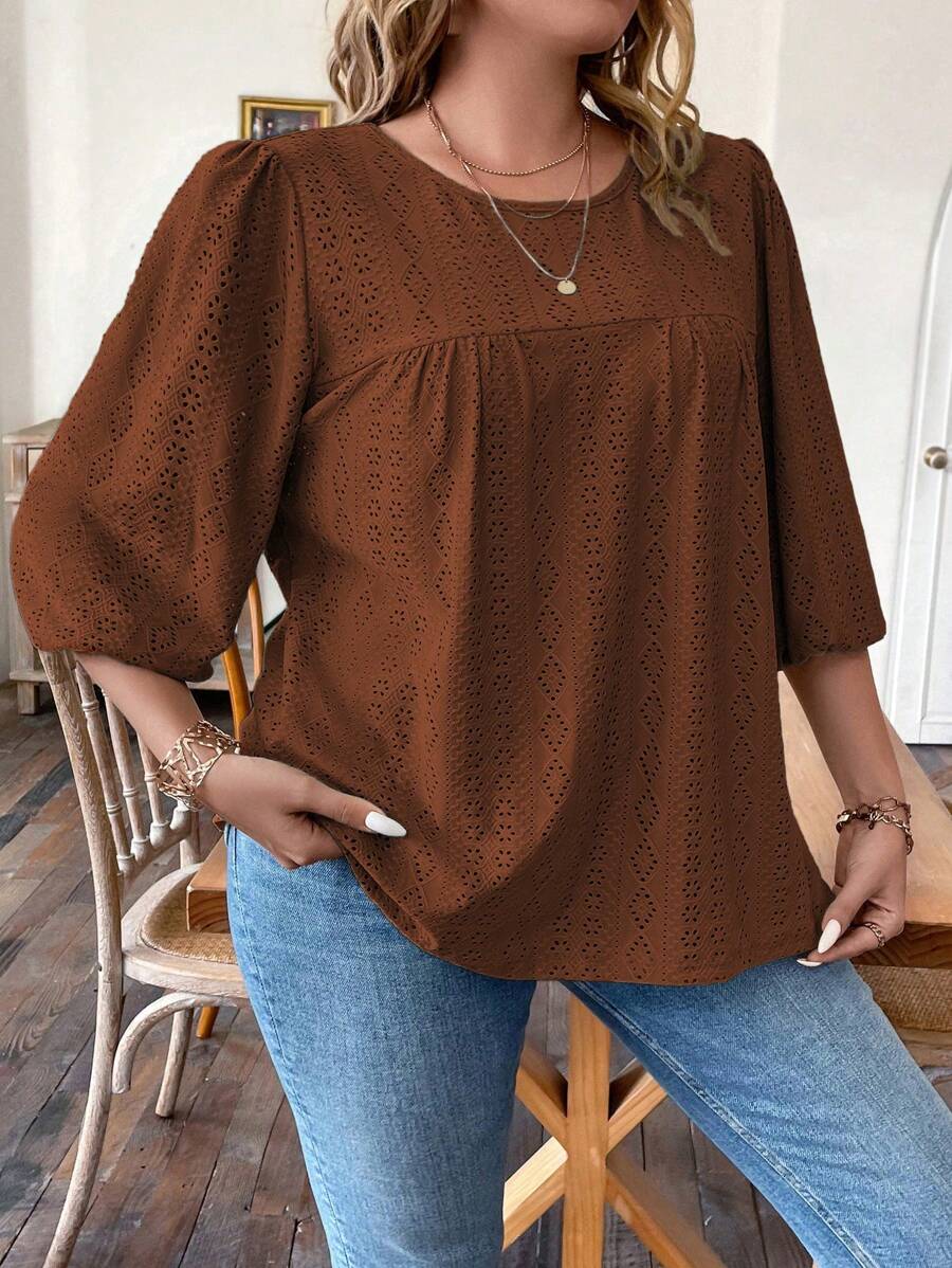 SHEIN LUNE Plus Size Women'S Puff Sleeve T-Shirt