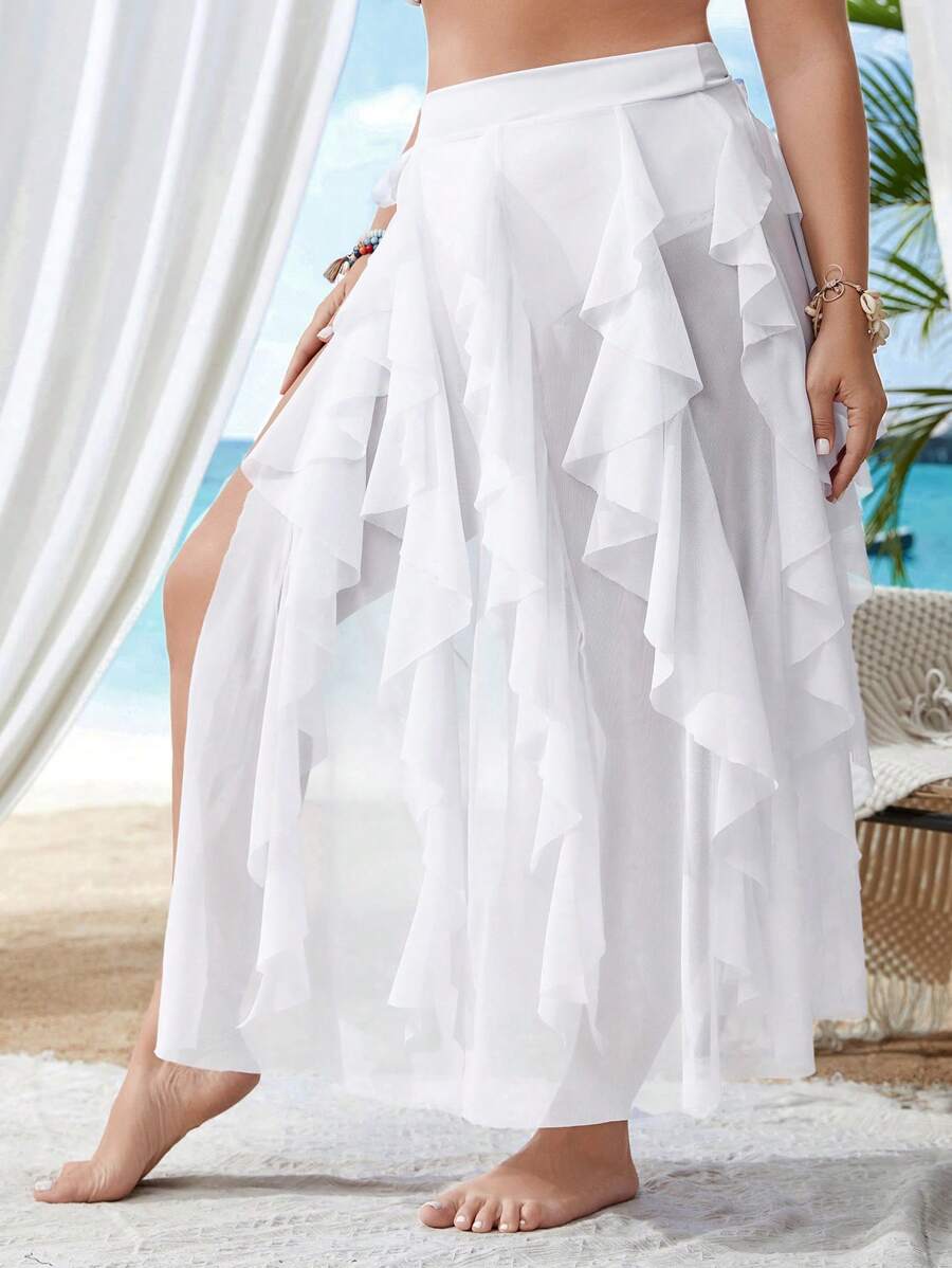SHEIN Swim Vcay Plus Size Women'S Ruffle Trim Cover Up Skirt