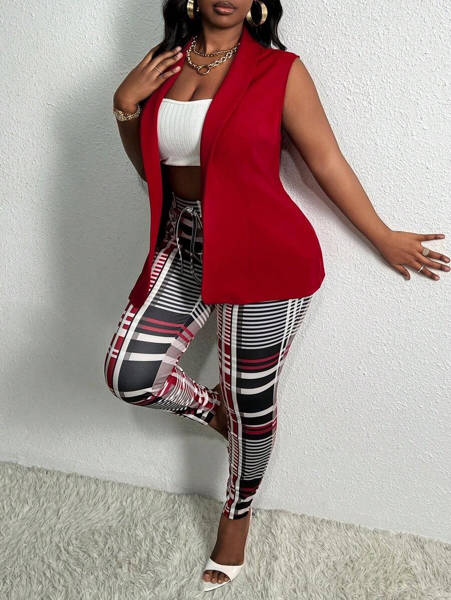 SHEIN Slayr Plus Size Women'S Shawl Collar Vest And Plaid Pants Set