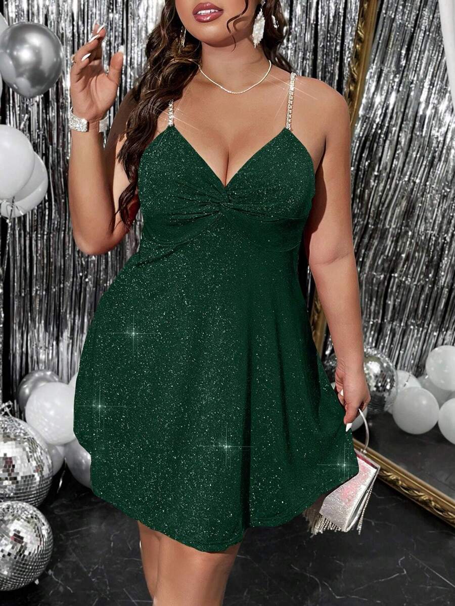 SHEIN BAE Plus Size Women'S Shiny Rhinestone Chain Strap Dress