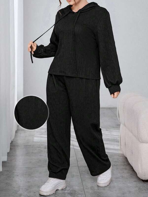 SHEIN Essnce Plus Size Women'S Textured Hooded Top & Pants Set