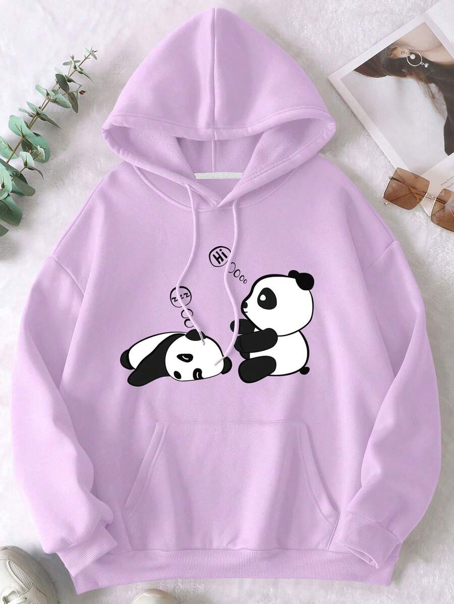 Plus Size Women's Hoodie With Teddy Bear And Letter Print