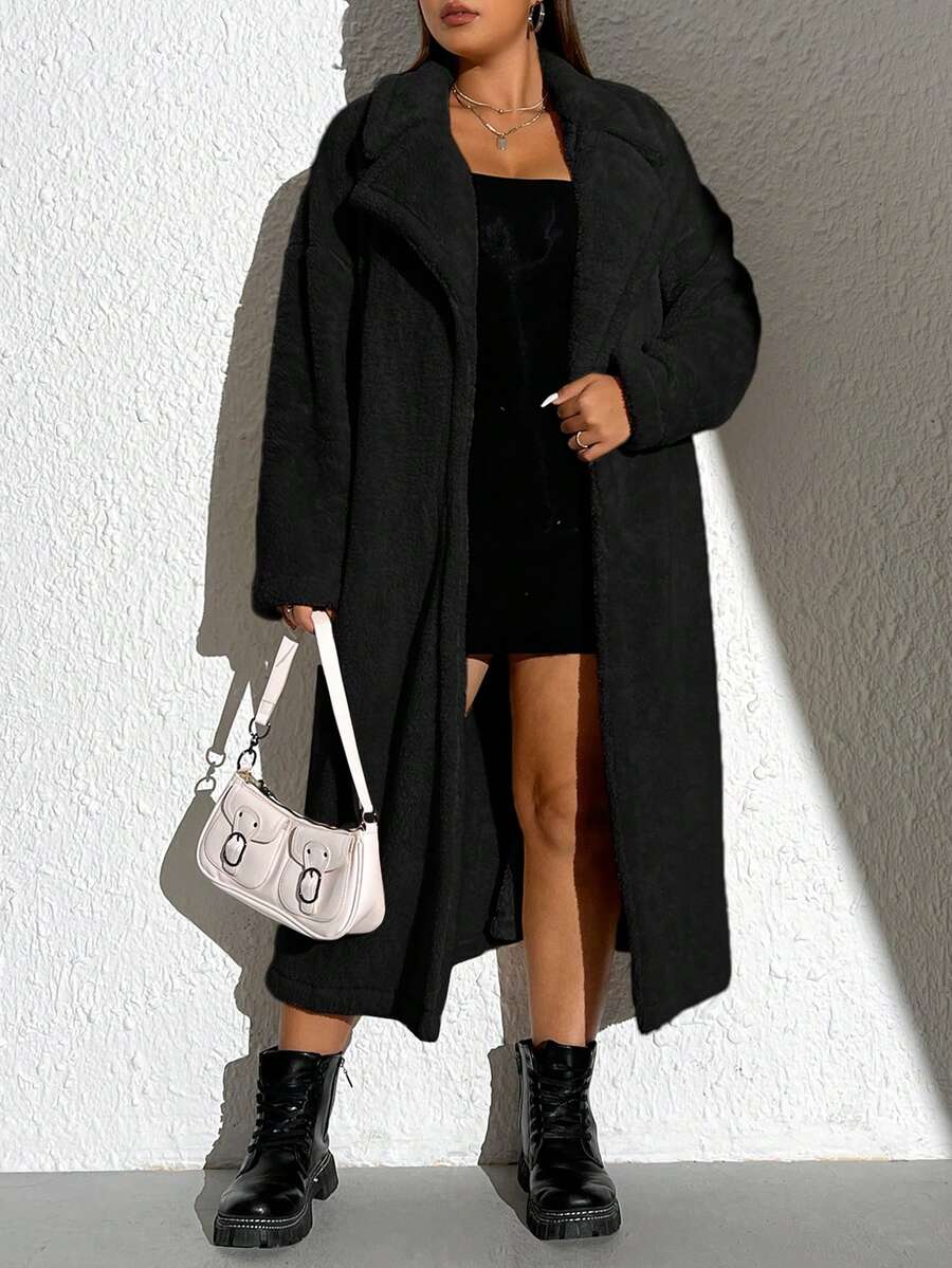 SHEIN Coolane Plus Size Women's Plaid Lapel Plush Long Sleeve Jacket