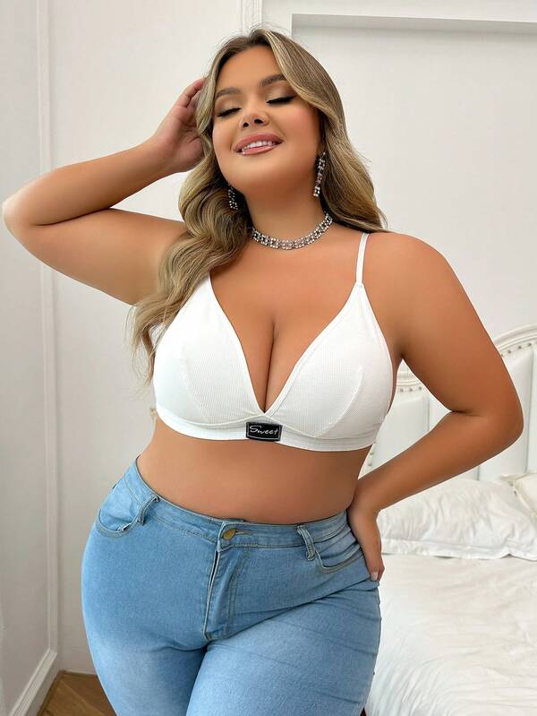 Plus Size Women's Solid Color Bra With Letter Patch