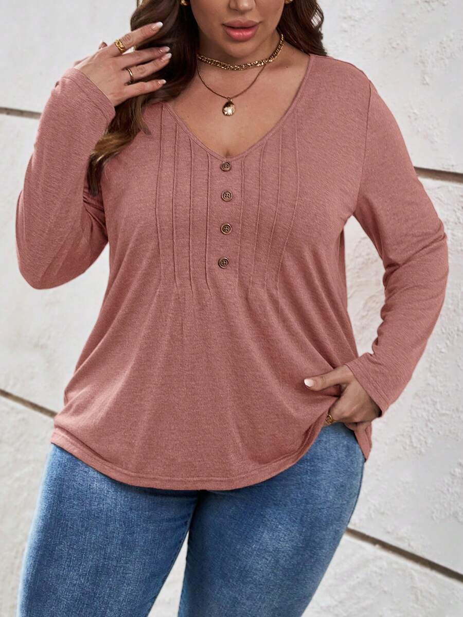 SHEIN LUNE Plus Size Women's V-neck Long Sleeve T-shirt