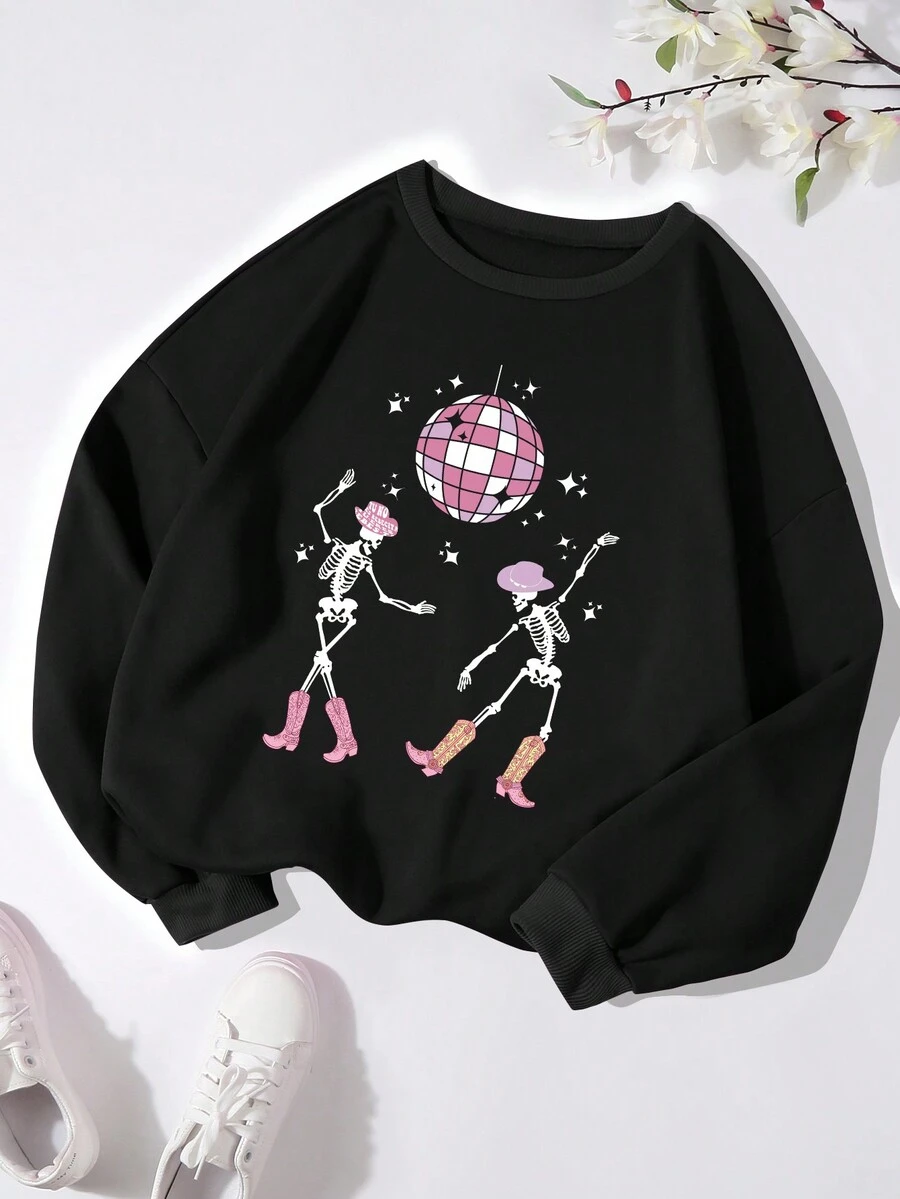 SHEIN Unity Plus Skeleton Print Thermal Lined Sweatshirt